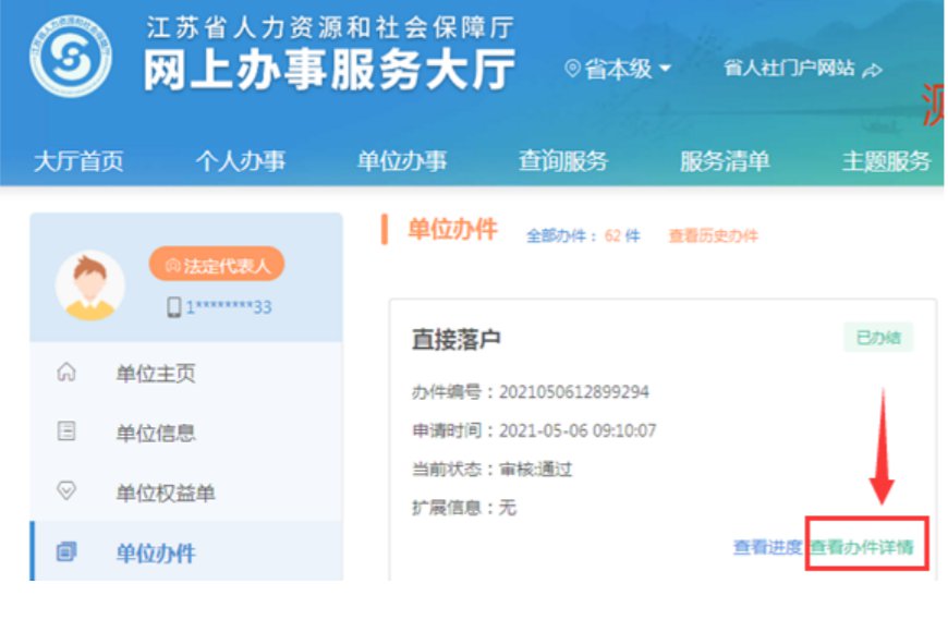 1、进入“单位中心”,点击“办理中”查看办理进度,点击“已办结”获取办理结果。