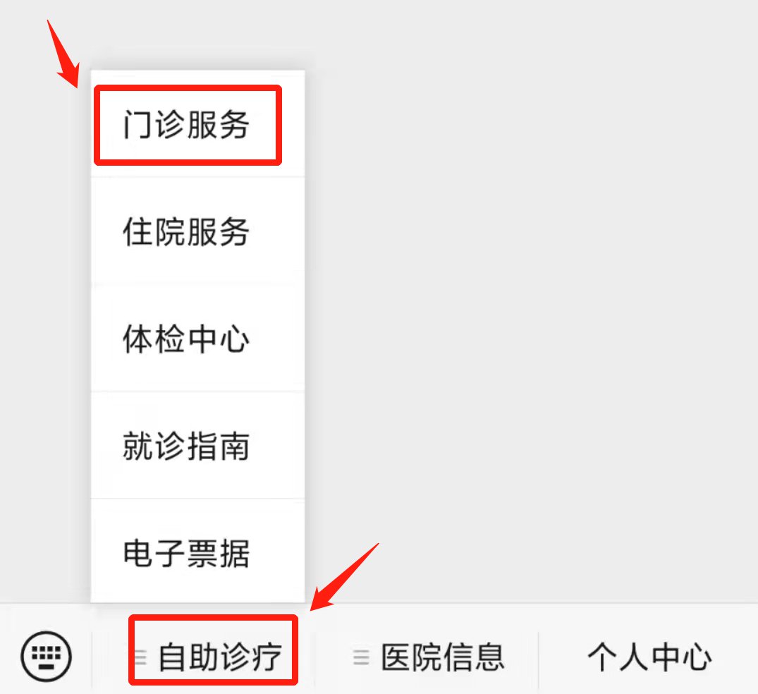 2、选择菜单栏中的“自助诊疗”——“门诊服务”