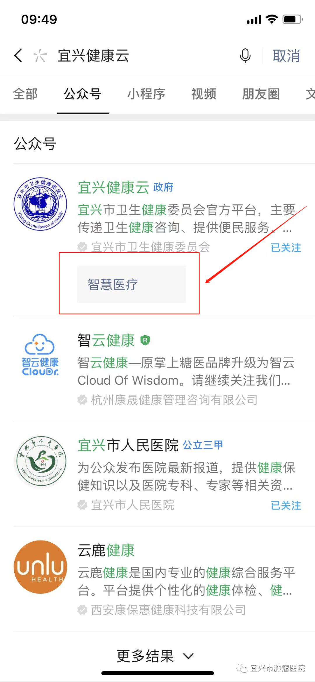 4、关注“宜兴健康云”公众号查询报告