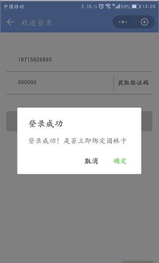 1、进入园林卡绑定页面,正确输入本人姓名、身份证号码,绑卡成功;