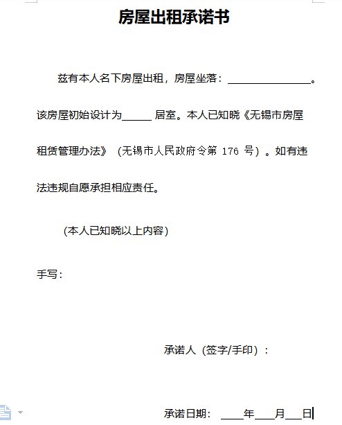无锡房屋出租承诺书下载入口 无锡租房协议