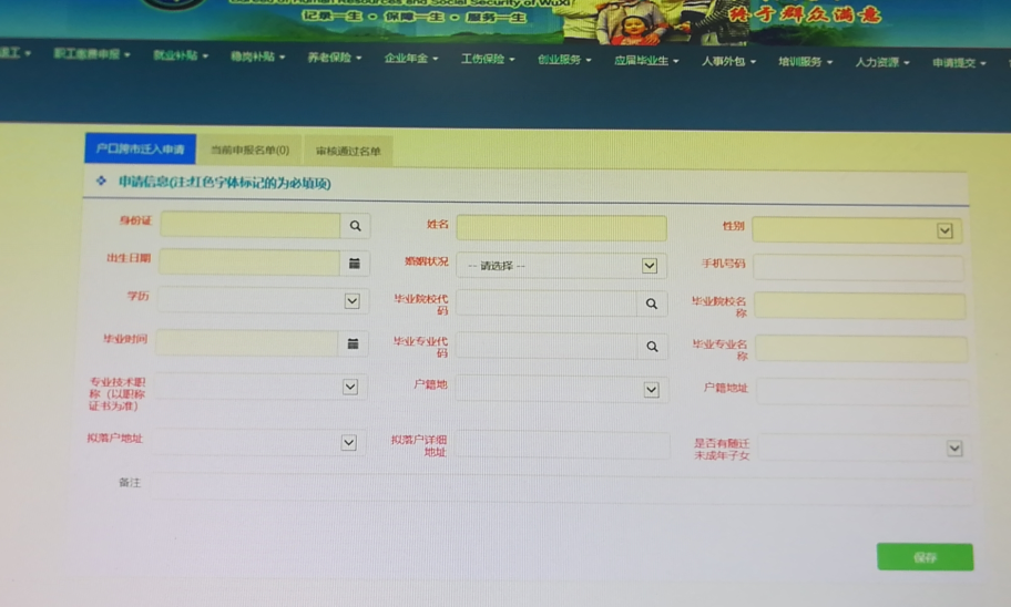然后按照页面提示填写资料、上传身份证、户口簿(或户籍证明)、毕业证书(国(境)外留学生上传教育部留学服务中心出具的认证报告)书)、职称证书(获得专业技术资格的人员需提供)、录取通知书或调动审批表(区属事业单位录用的进编人员需提供)等,等待审核。据反馈,“户口迁入 ”和“档案申请 ”两项是分开的,愿意把档案迁入无锡的申请就可以,不愿意的或者找不到自己档案的可以不用迁入档案。