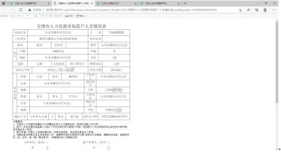 生成《无锡市人力资源市场落户人员情况表》