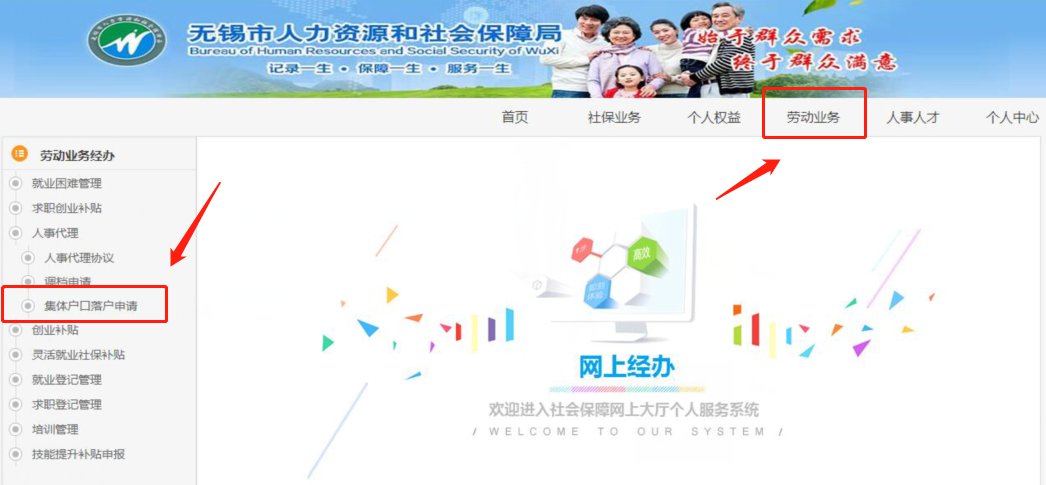 具体流程:无锡市人力资源和社会保障局官网(http://hrss.wuxi.gov.cn) ,点击【办事大厅】,点击右上角【个人注册】,实名认证,登录个人账户进去,点击【劳动业务-人事代理-集体户口落户申请】,然后按要求填写资料