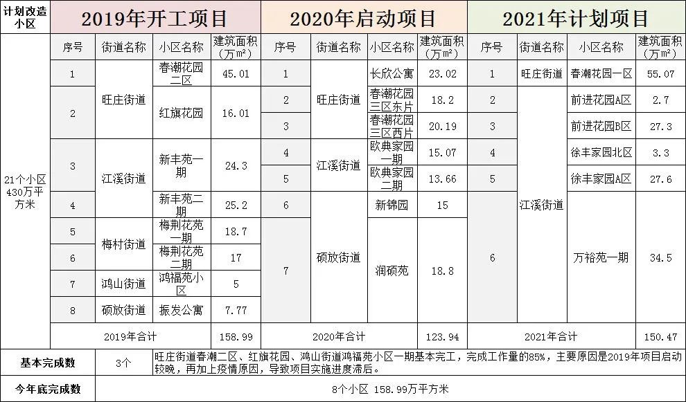 新一批7个安置房小区的综合改造工程,将于10月中下旬起启动。改造总面积约120万平方米,包括春潮花园三区东片、春潮花园三区西片、长欣公寓、欧典家园、新锦园、润硕苑、鸿福苑三区。另外,还有集中在旺庄街道和江溪街道的150万平方米安置房小区,也将于2021年全部列入改造计划。