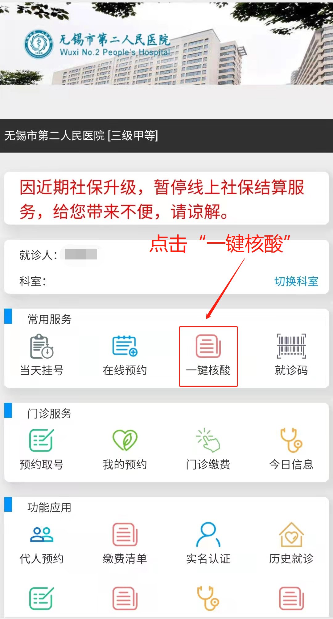 无锡二院代人预约核酸检测操作流程: