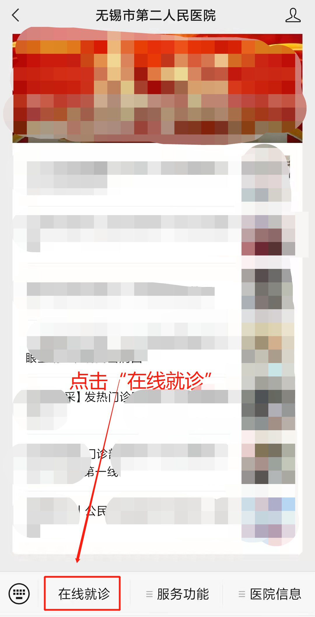 步骤一:关注“无锡市第二人民医院”公众号