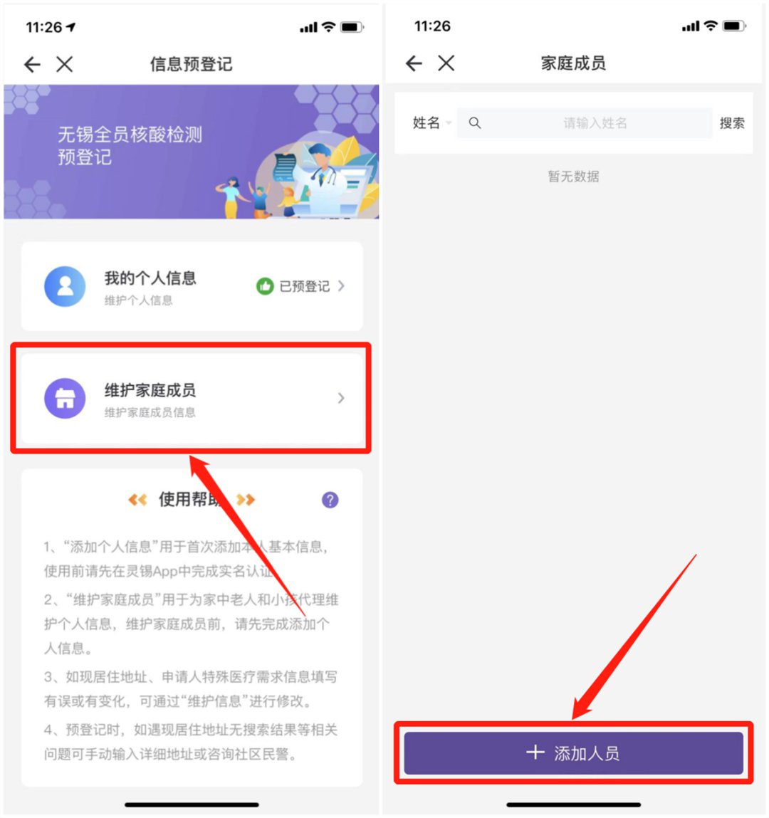 港澳台在锡人员如需【核酸检测信息预登记】,可委托在锡的家人、朋友通过“灵锡”APP或者“灵锡”微信小程序中的【核酸检测预登记】平台【维护家庭成员】版块,进行核酸检测信息预登记