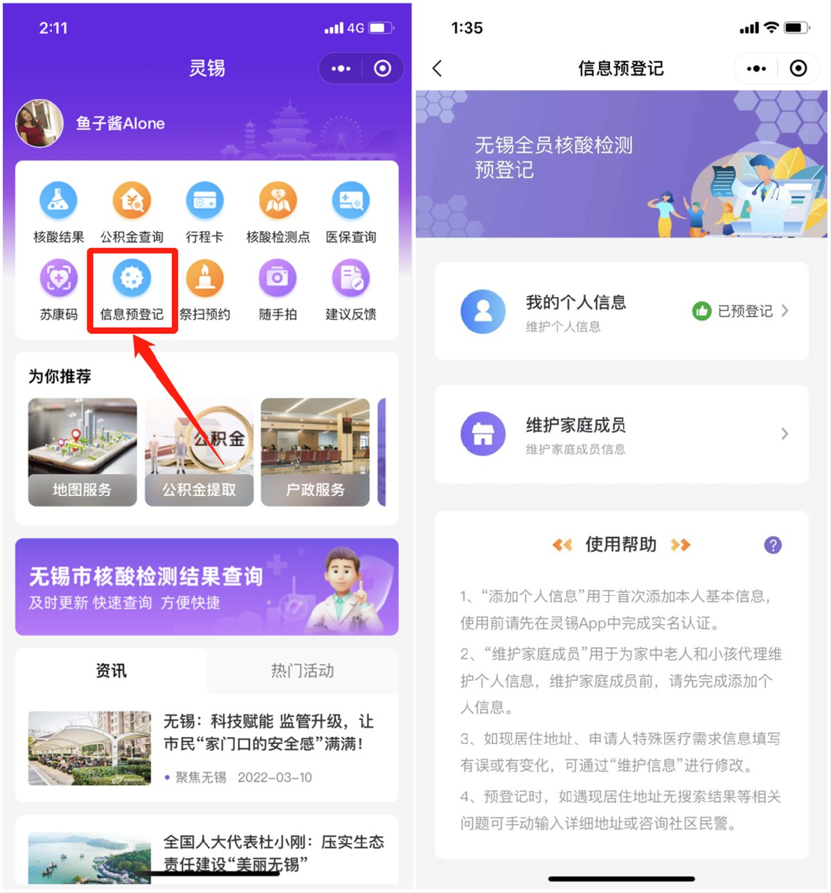 注册登录“灵锡”APP—核酸检测【信息预登记】平台