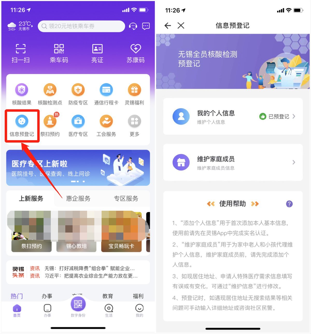 注册登录“灵锡”APP—核酸检测【信息预登记】平台