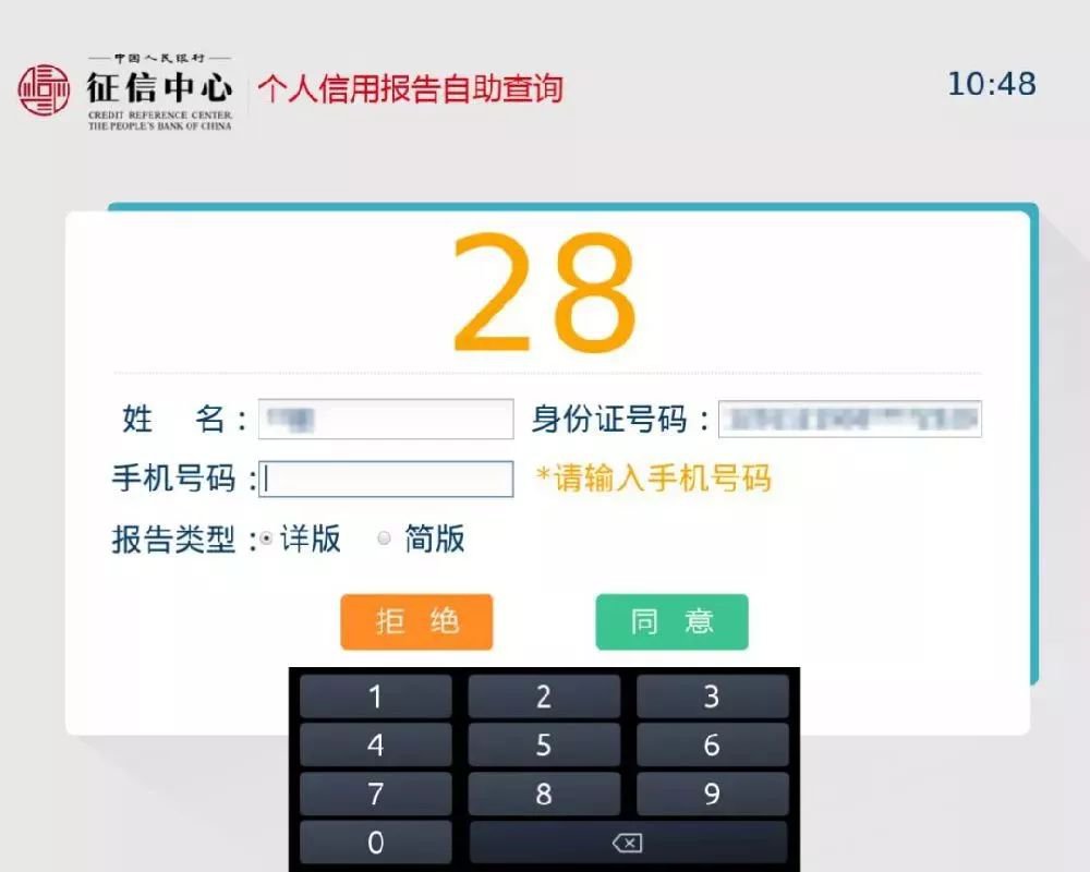 人脸比对通过后,请输入手机号码并选择报告类型。确认信息和手机号以及选择无误之后,点击【同意】按钮,页面将显示报告信息。