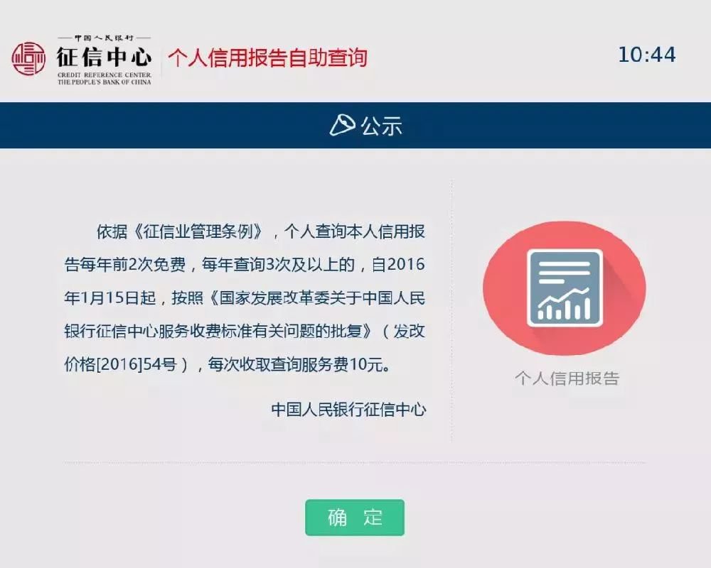 个人查询本人报告每年前两次免费,第三次及以上查询,按照有关规定,须每笔支付查询费人民币10元。如果当年查询已超过两次,页面将显示当年查询记录。