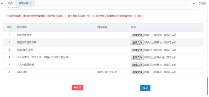 白色部分内容填写完成,附件上传完成后可点击下方【提交】按钮,系统提示“操作成功”,租房补贴申报提交至人社局主管科室审核。