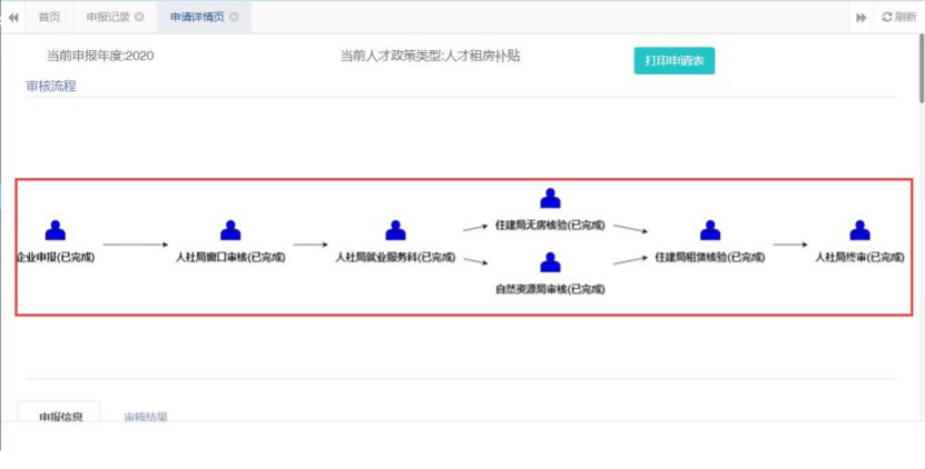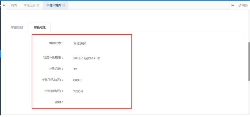 (二)申报跟踪注:租房补贴申报提交之后,可在【我的申报】-【申报记录】菜单下查看审核流程节点和审核结果。
