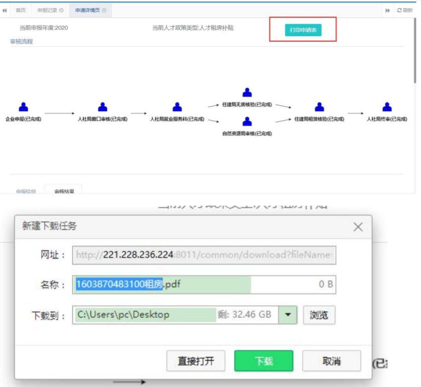 (三)申请表打印点击【打印申请表】按钮,下载系统生成的 pdf 申请表后打印