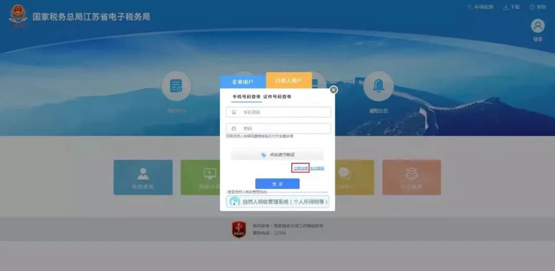 2.自然人用户通过手机号码或身份证号码登录(首次登录的自然人纳税人需先注册)。