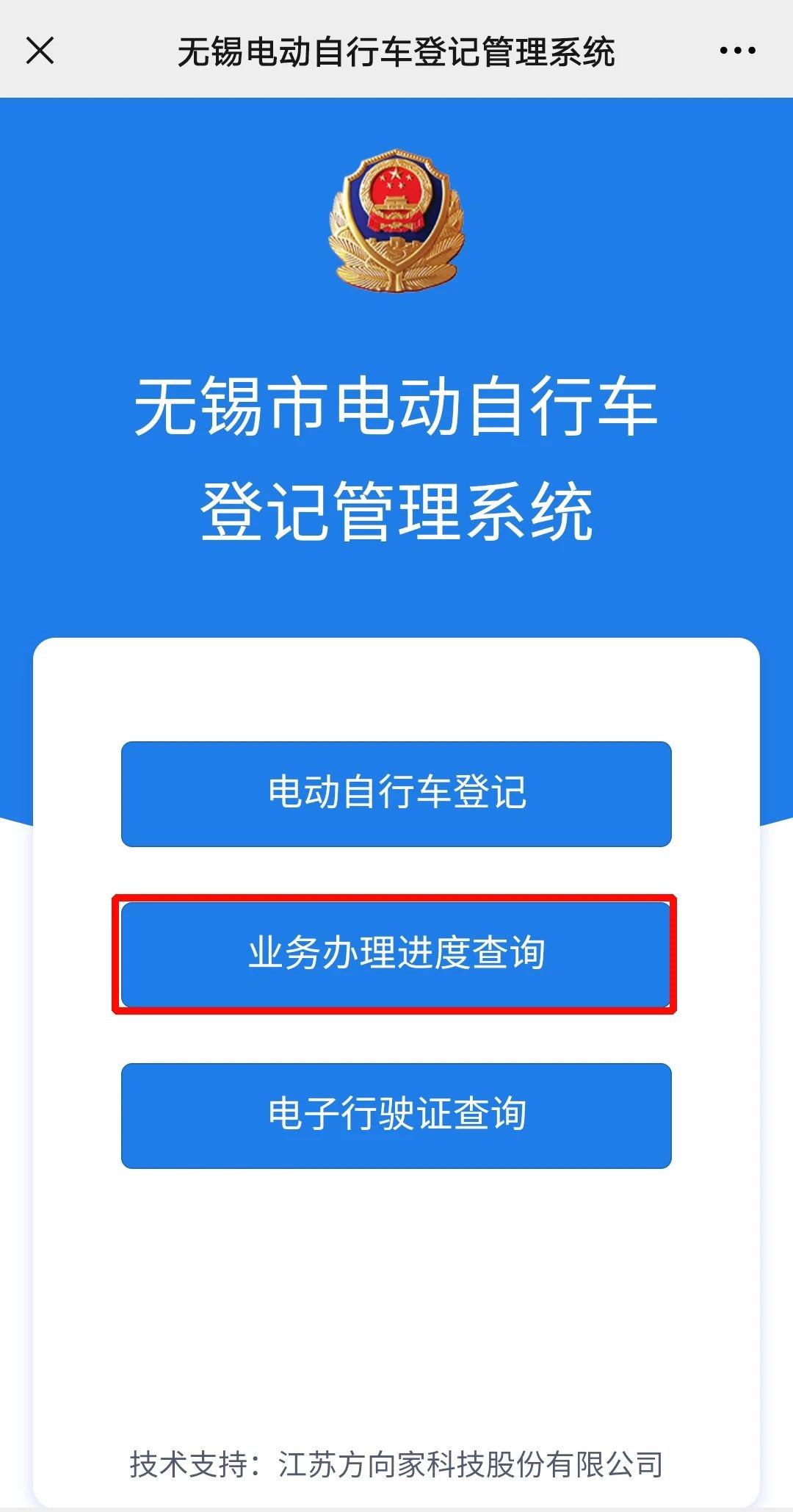 (一)微信搜索并关注“江阴交警”微信公众号,点击底部菜单栏【业务办理】-【电动自行车上牌】;或“江阴公安微警务”微信公众号,点击底部菜单栏【交管业务】-【电动自行车上牌】
