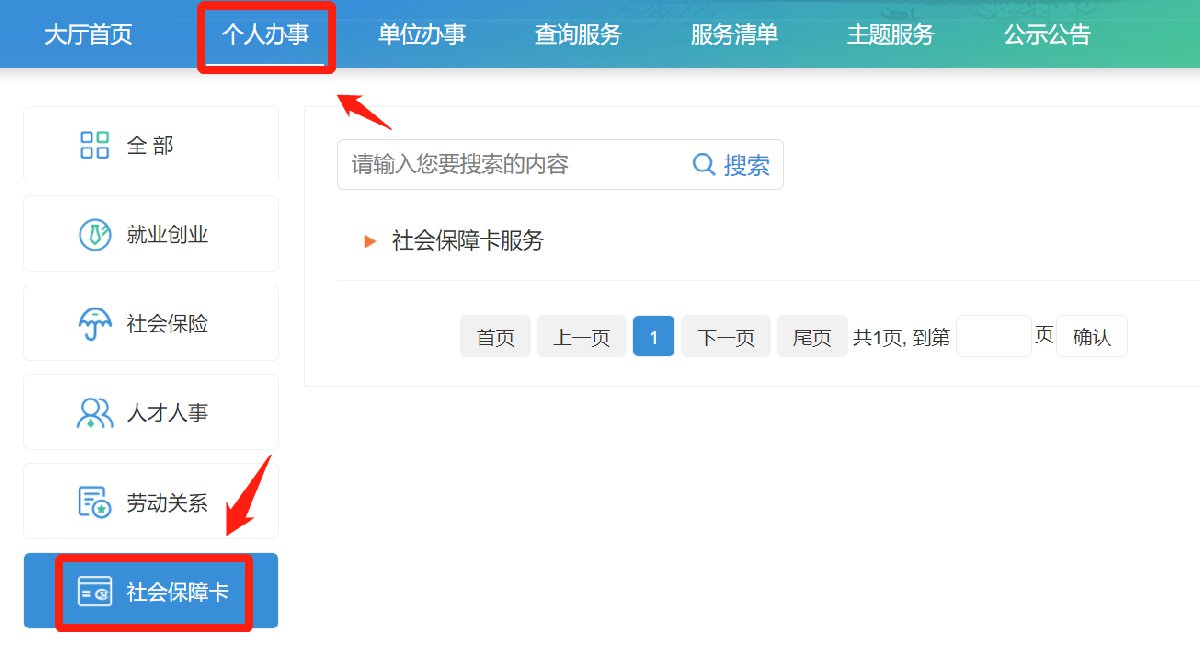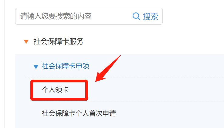 第三步:点击“社会保障卡服务”,点击“个人领卡”,按步骤填写相关信息即可