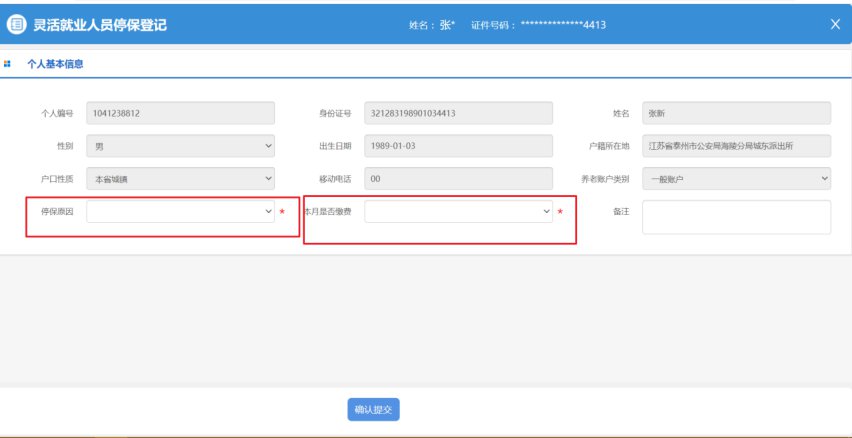 3.输入停保原因,本月是否缴费、备注。