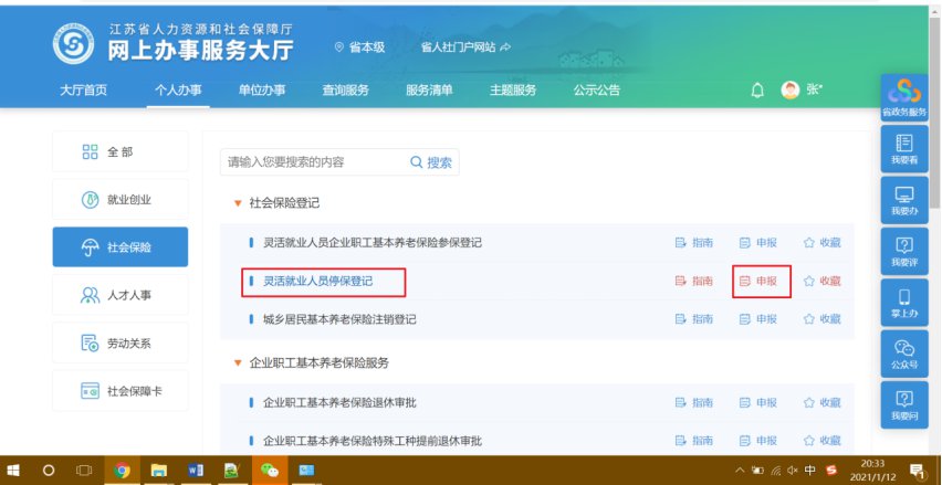 无锡灵活就业人员停保登记省人社平台办理指南