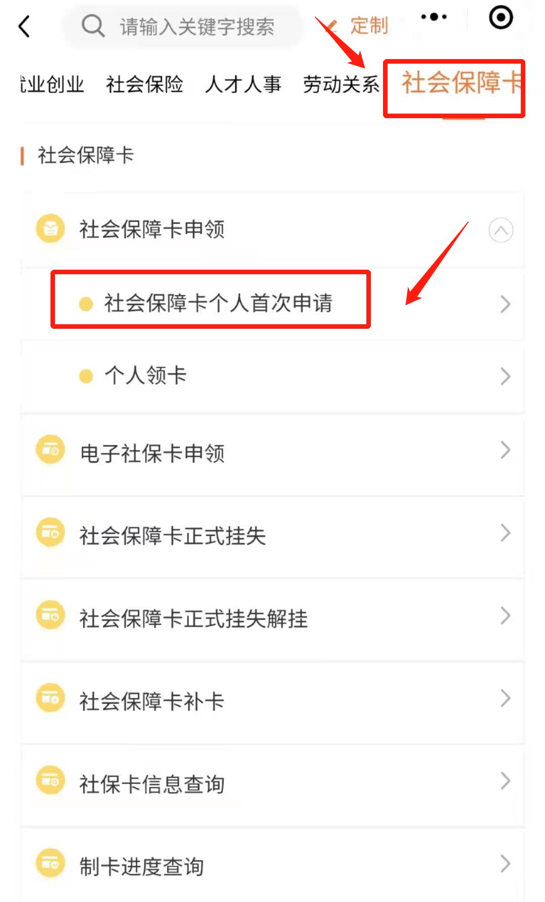 第四步:选择“社会保障卡”,点击“社会保障卡个人首次申领”