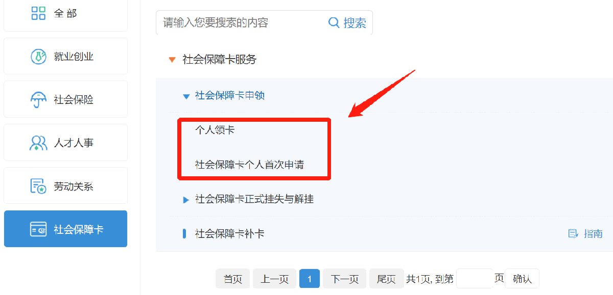 第一步:注册并登录省人社平台,选择“个人办事”的“社会保障卡”