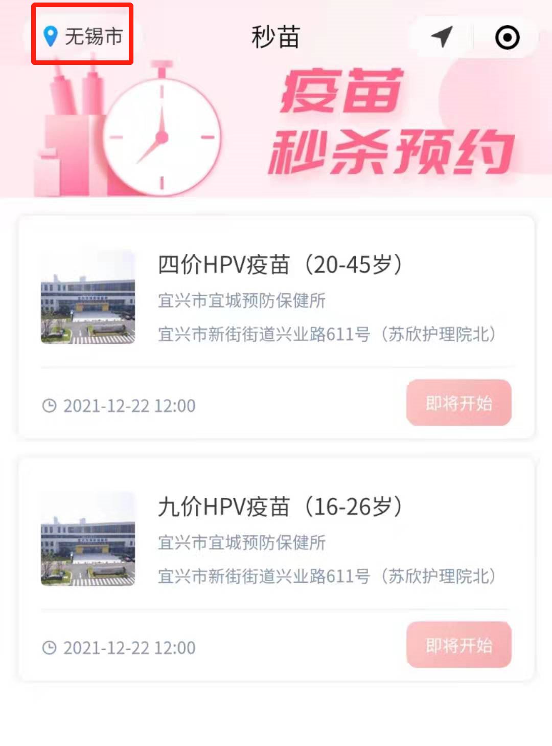 第三步:左上角定位无锡并选择需要接种的疫苗