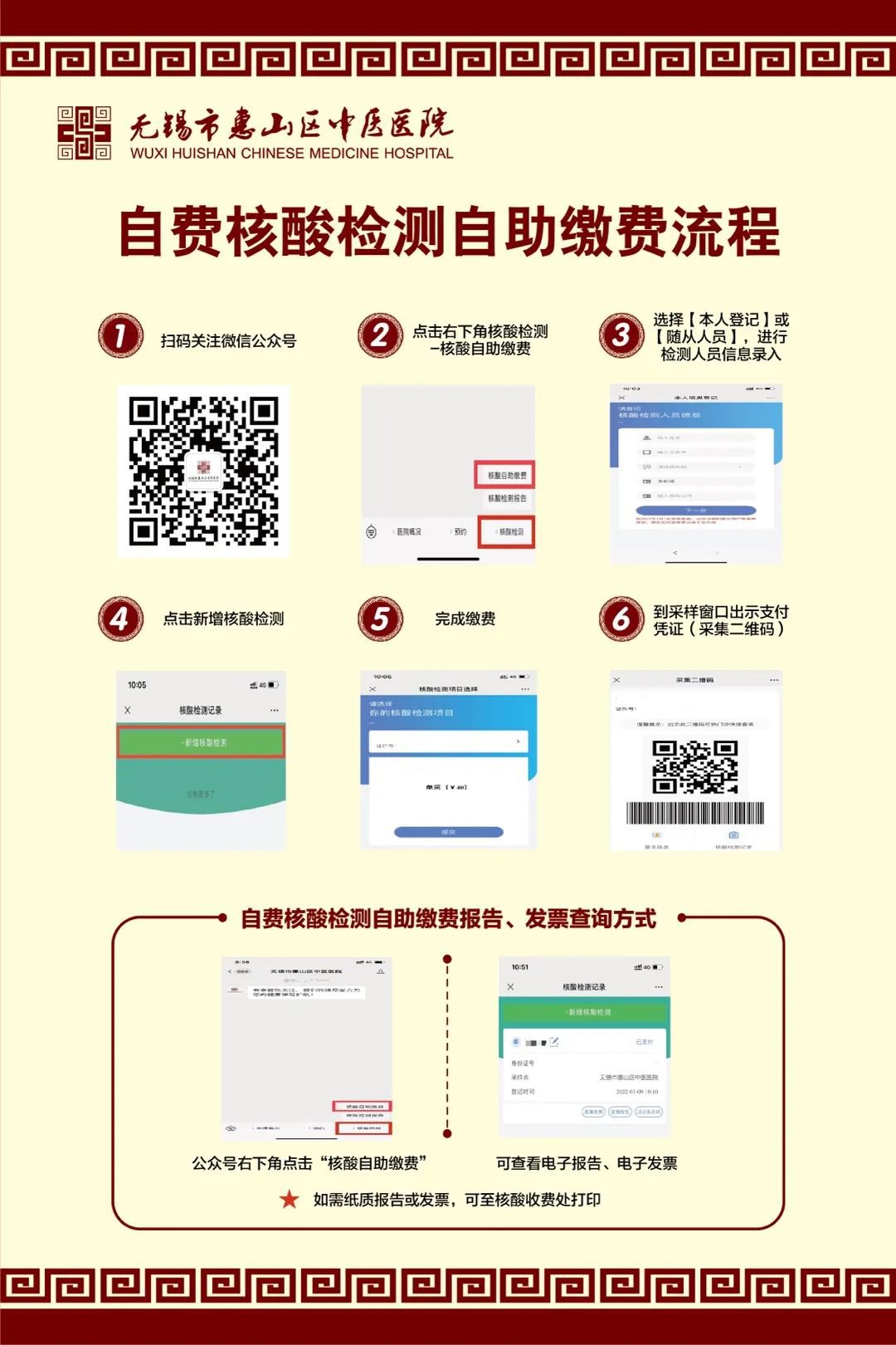 2、电子报告可通过“无锡市惠山区中医医院”公众号右下角“核酸检测报告”查询。