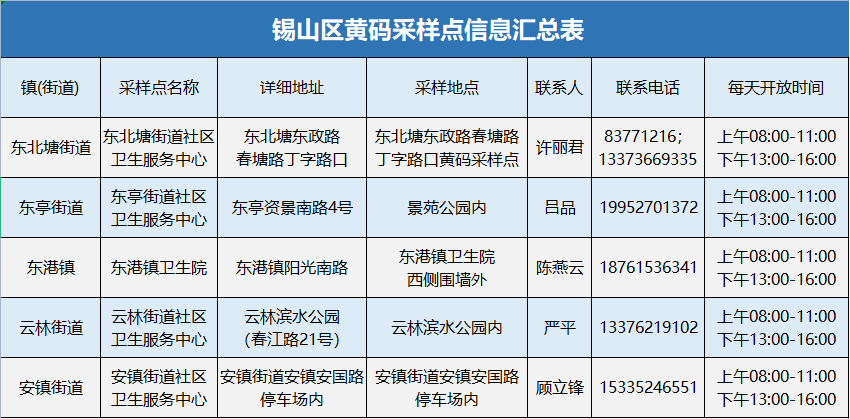 2022无锡锡山区健康码黄码人员核酸检测点汇总