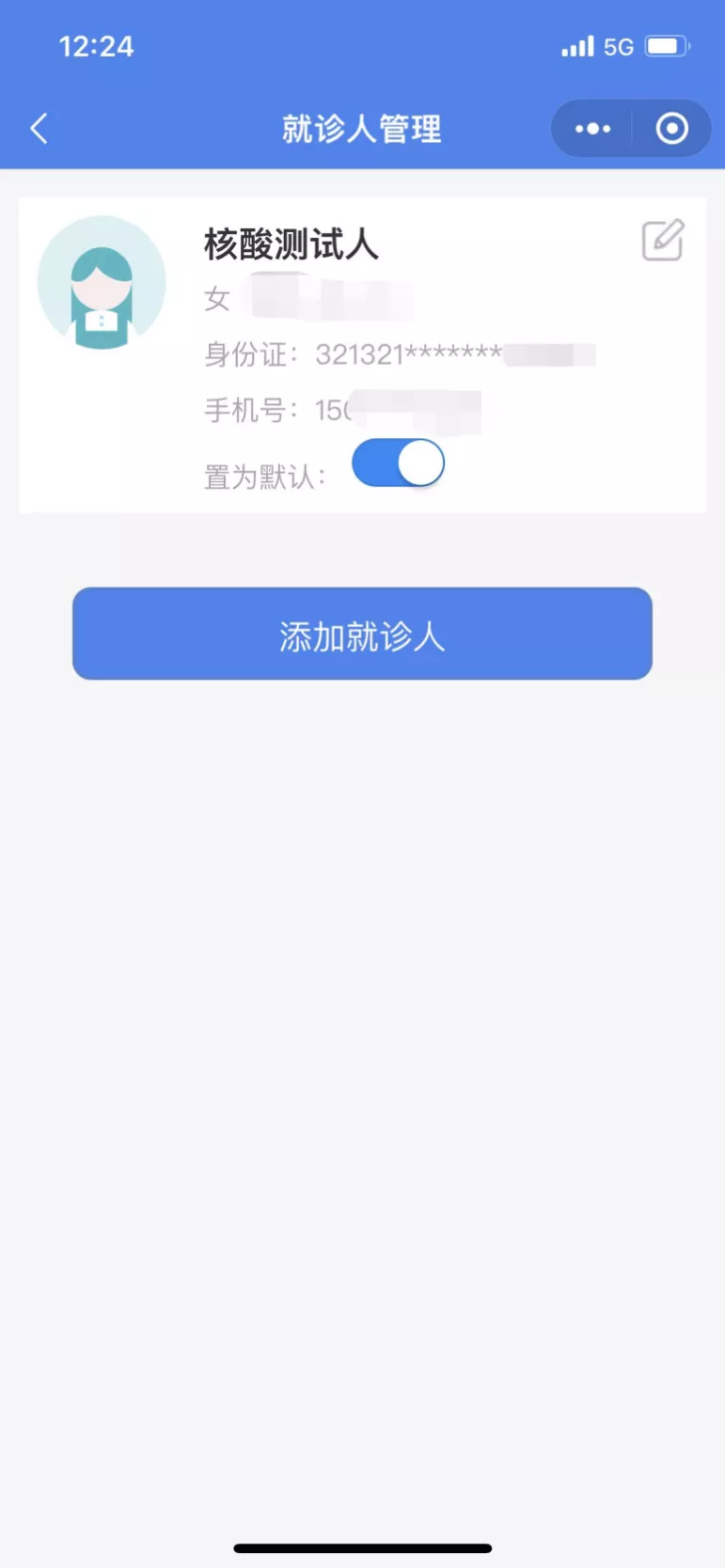 添加成功,可以看到就诊人列表多了一条就诊人信息。