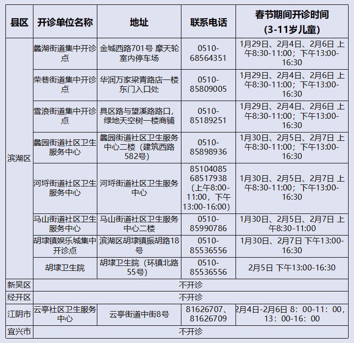 2022春节期间无锡3到11岁儿童新冠疫苗接种时间+地点+电话