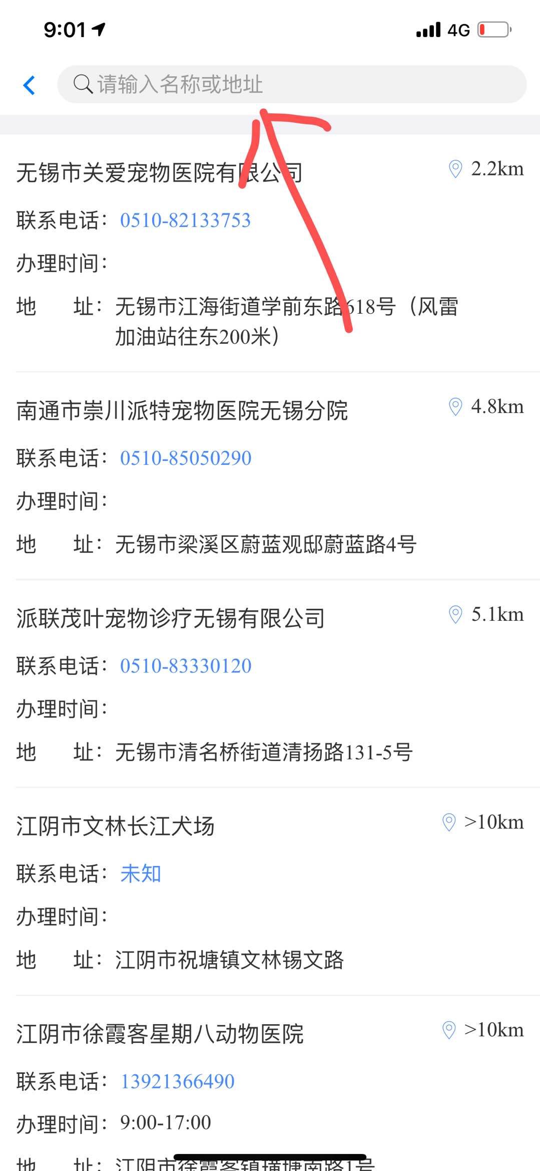 5、输入名称或地址即可查询
