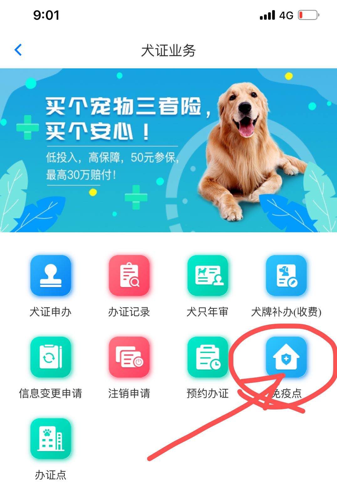 3、在首页点击“犬证在线申办”
