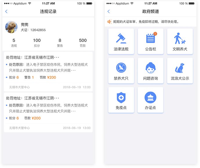 点击【我的】——违规记录, 可详细查看犬只违章信息