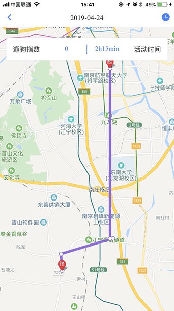 查看轨迹,APP点击首页右上角【轨迹】 ,可查看狗狗的历史轨迹。APP连接上犬牌时可上传狗狗移动位置。
