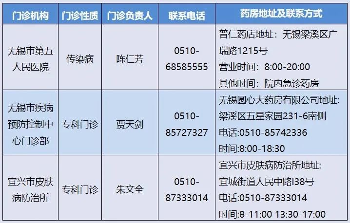 无锡市艾滋病暴露前后预防门诊及药品获取信息一览表