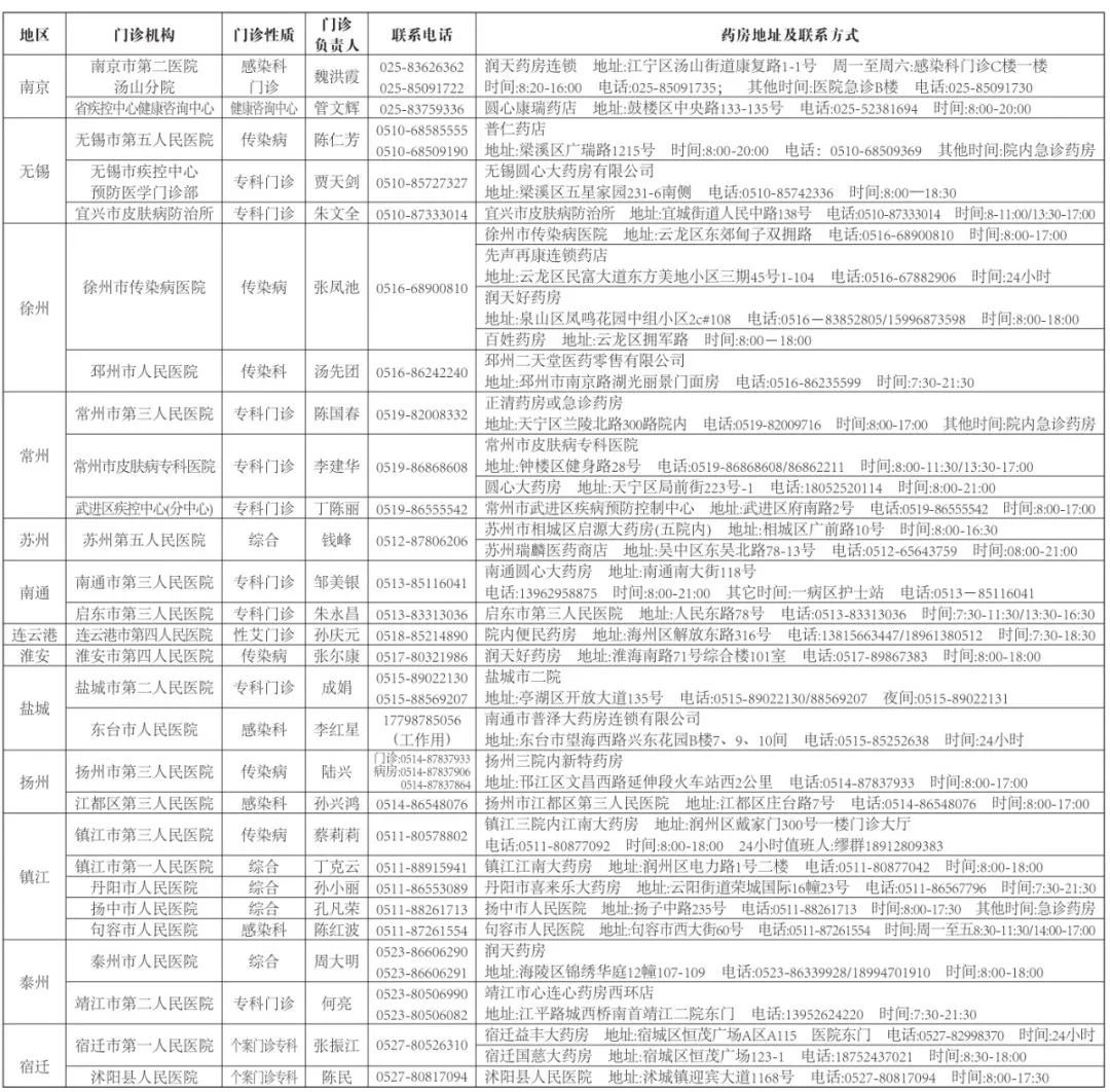 江苏省艾滋病暴露前后预防门诊及药品获取信息一览表