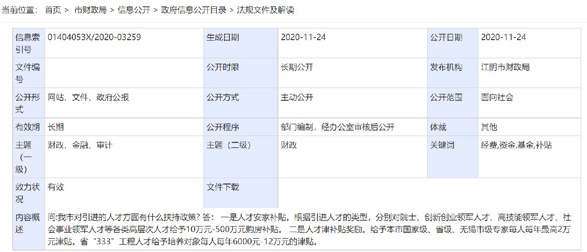 江阴市对引进人才有什么扶持政策 江阴人才引进政策补贴