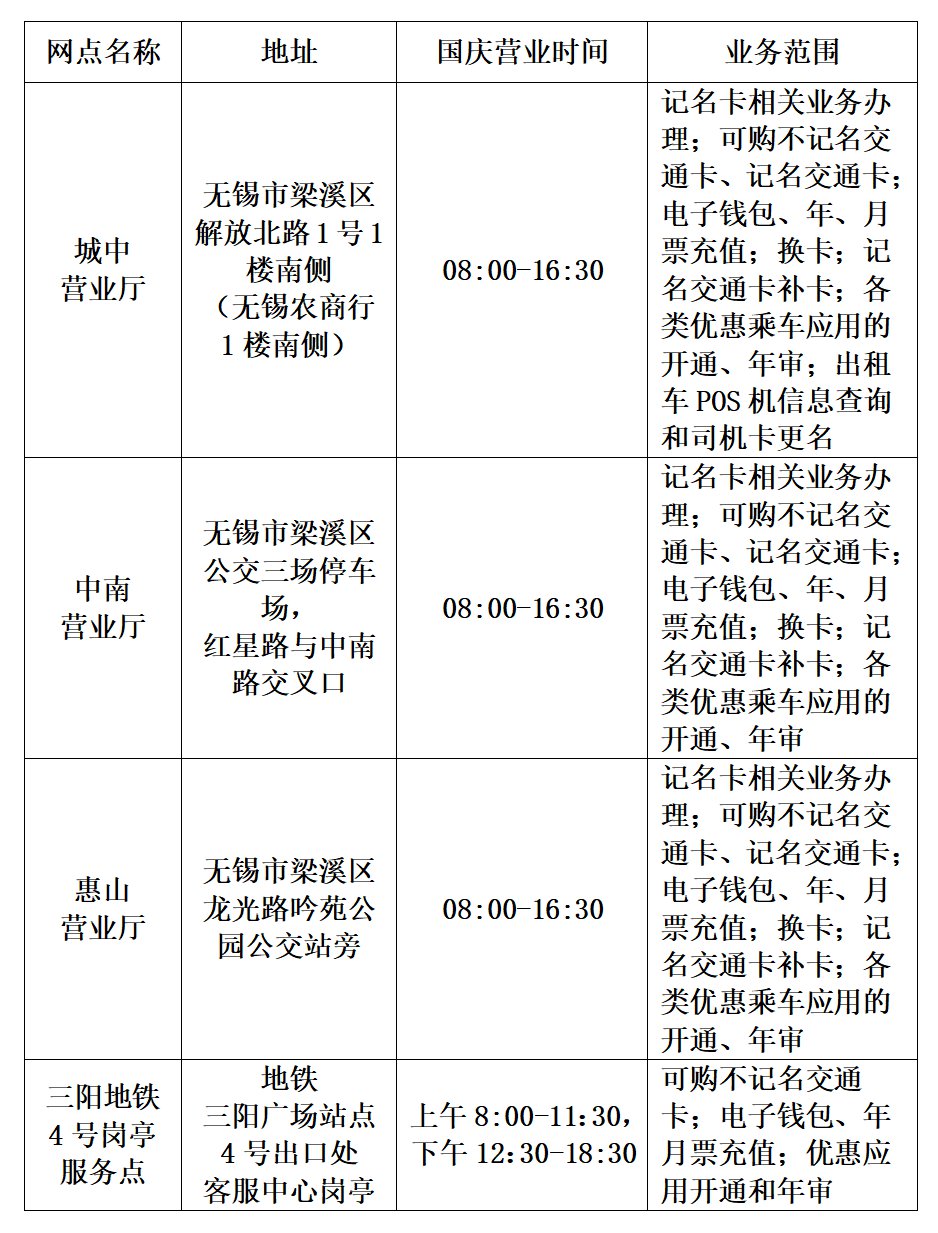 2021国庆期间无锡太湖交通卡服务网点营业时间+业务范围