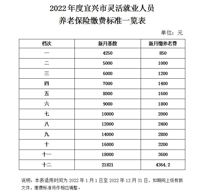 宜兴2022年企业职工基本养老保险缴费档次发布