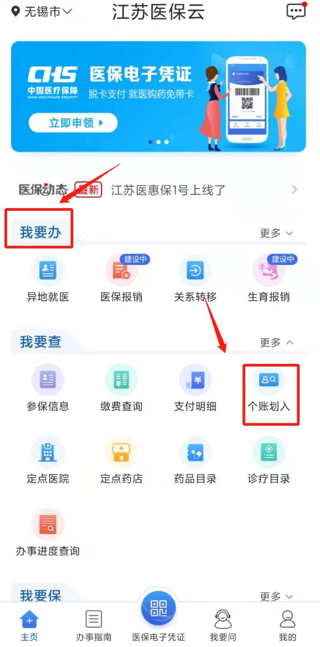 江苏医保云app查询无锡医保个人账户划入金额操作流程: