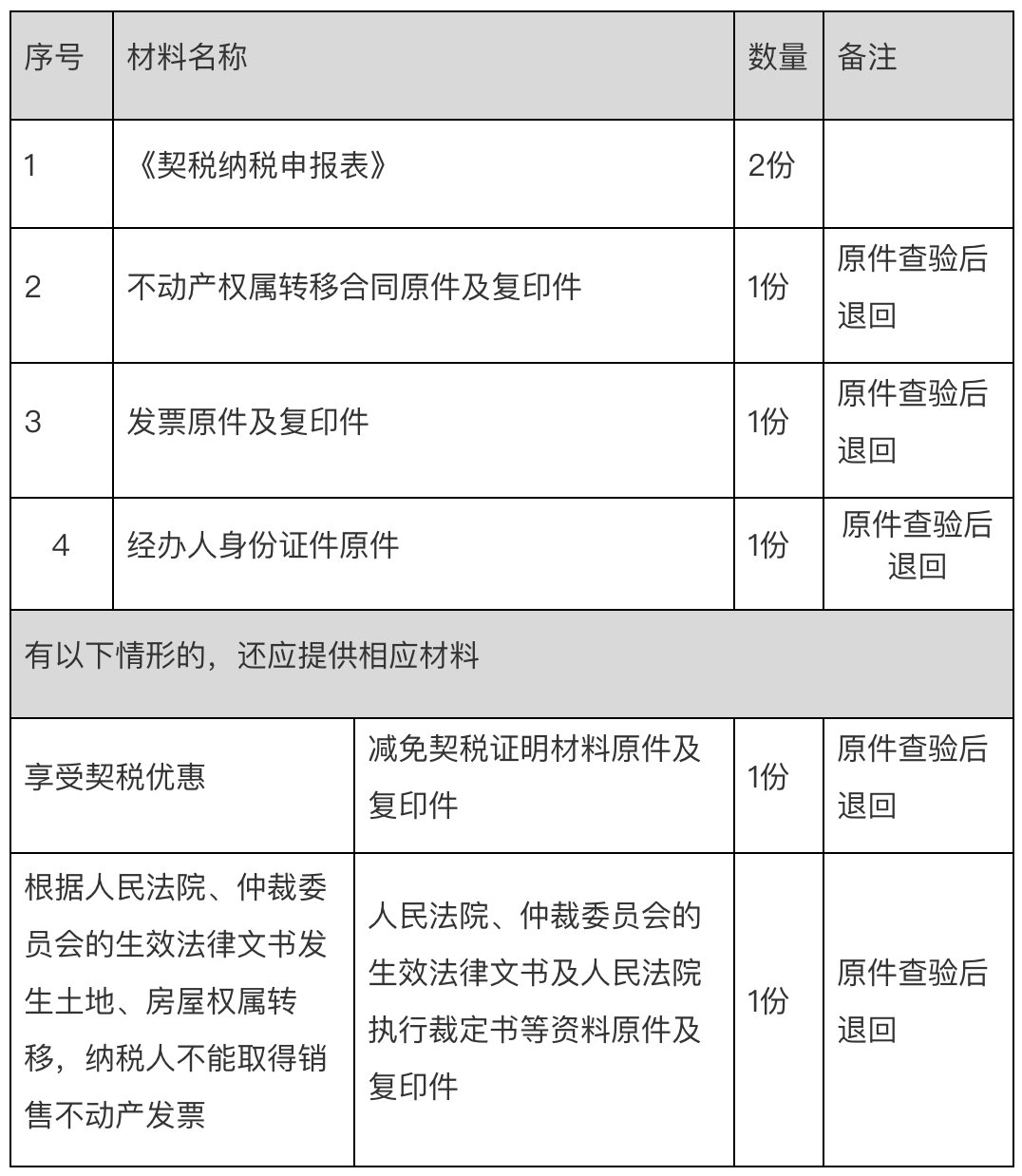 7.购买新建商品房的纳税人,因销售新建商品房的房地产开发企业已办理注销税务登记或者被税务机关列为非正常户等原因不能取得销售不动产发票的,可在税务机关核实有关情况后办理契税纳税申报。