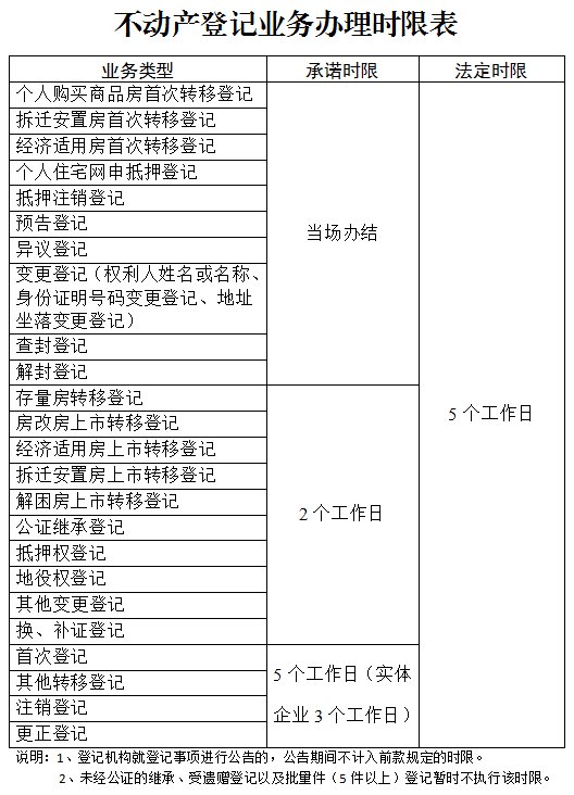 无锡不动产登记业务办理登记时限表 无锡不动产登记中心官网
