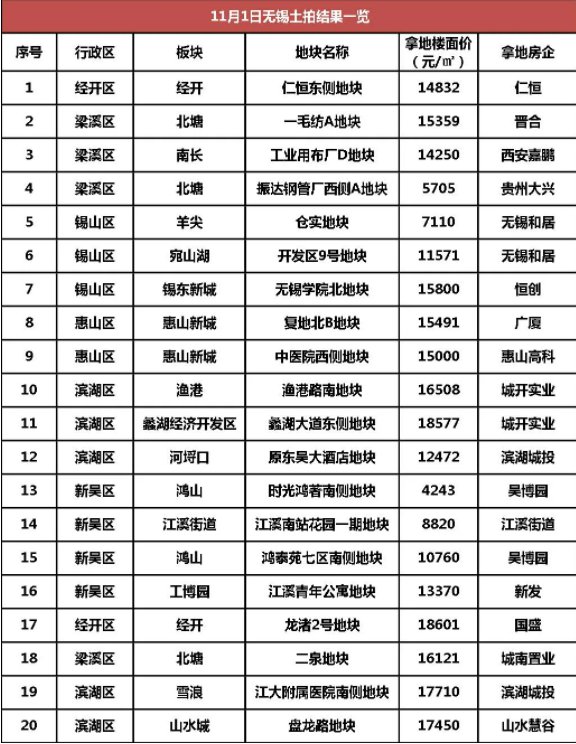 无锡土拍结果最新消息 无锡今天土拍最新消息