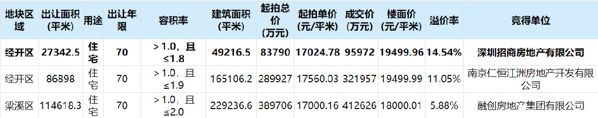 土拍结果: