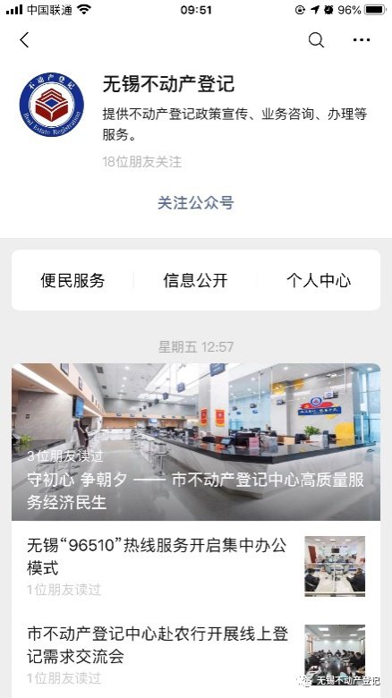 1、权利人需关注“无锡不动产登记”公众号,如下图所示: