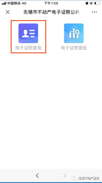 3、进入“无锡市不动产电子证照公共服务平台”主页,选择“电子证照查询”。