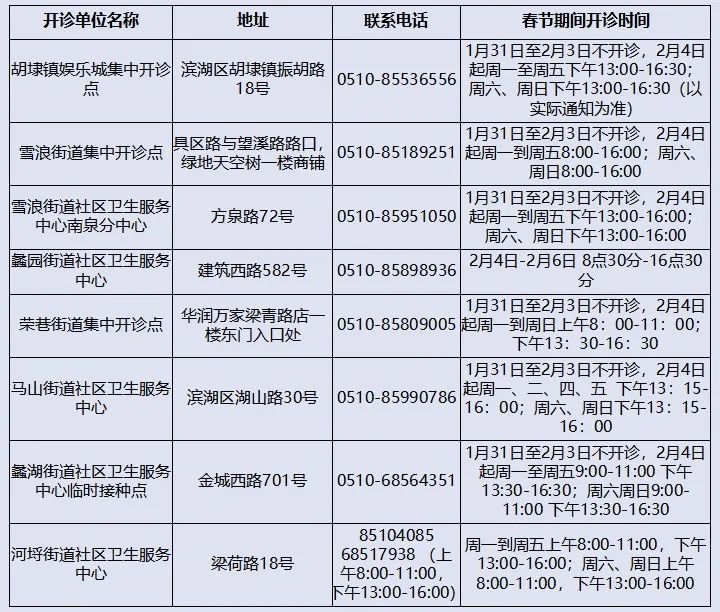 2022春节期间无锡滨湖区新冠疫苗接种安排汇总