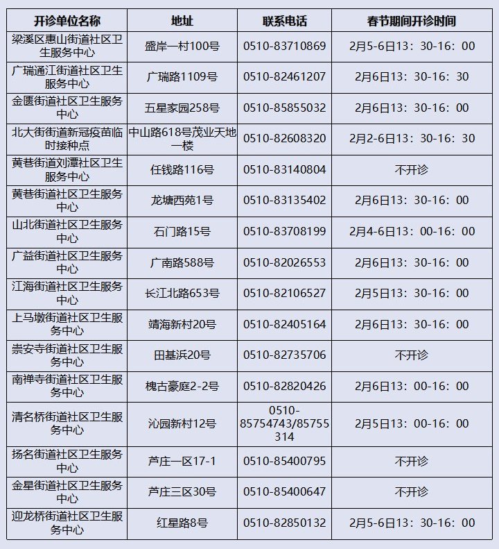 当前新冠肺炎疫情仍全球蔓延,国内多地出现本土确诊病例,及时接种新冠病毒疫苗是最有效的防控手段之一。春节期间,梁溪区继续为广大市民提供新冠病毒疫苗接种服务。详见下表: