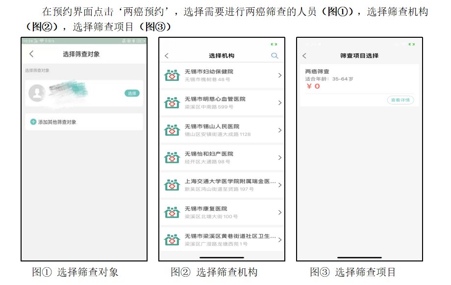 无锡“两癌”筛查项目线上自助建档分时预约具体流程